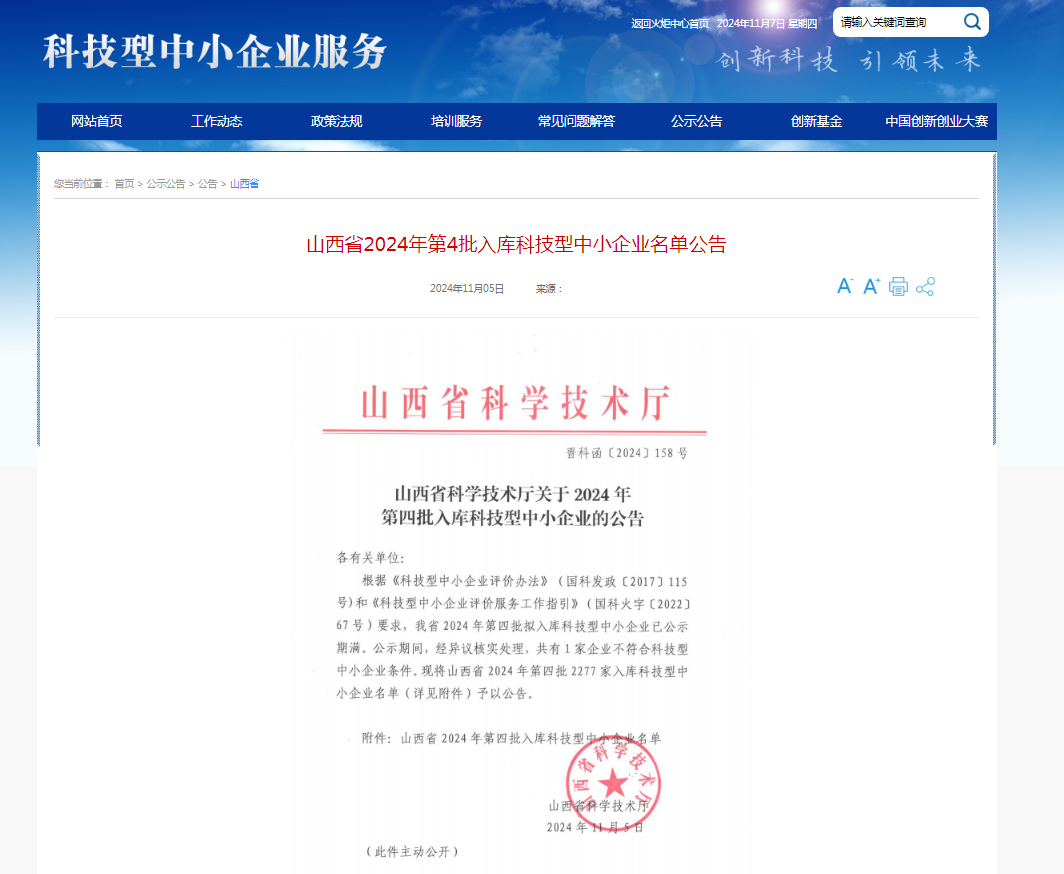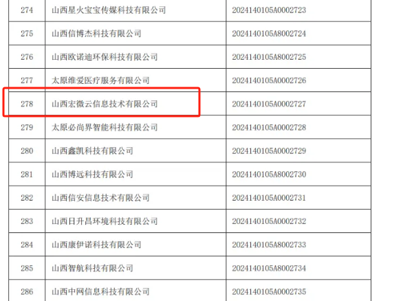 日前,山西省科學(xué)技術(shù)廳發(fā)布《山西省2024年第4批入庫(kù)科技型中小企業(yè)名單》公告,山西宏微云信息技術(shù)有限公司成功入選山西省科技型中小企業(yè)。(入庫(kù)編號(hào):2024140105A0002727)