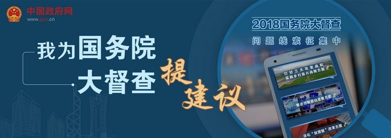 為貫徹落實(shí)李克強(qiáng)總理關(guān)于“開(kāi)門(mén)搞督查”的重要指示精神,配合開(kāi)展2018年國(guó)務(wù)院大督查,從7月10日至9月10日,國(guó)務(wù)院辦公廳開(kāi)展“我為大督查提建議”活動(dòng),面向社會(huì)公開(kāi)征集政策措施不落實(shí)、政府管理服務(wù)不到位、有關(guān)部門(mén)和單位不作為慢作為亂作為等問(wèn)題線索以及相關(guān)意見(jiàn)建議。